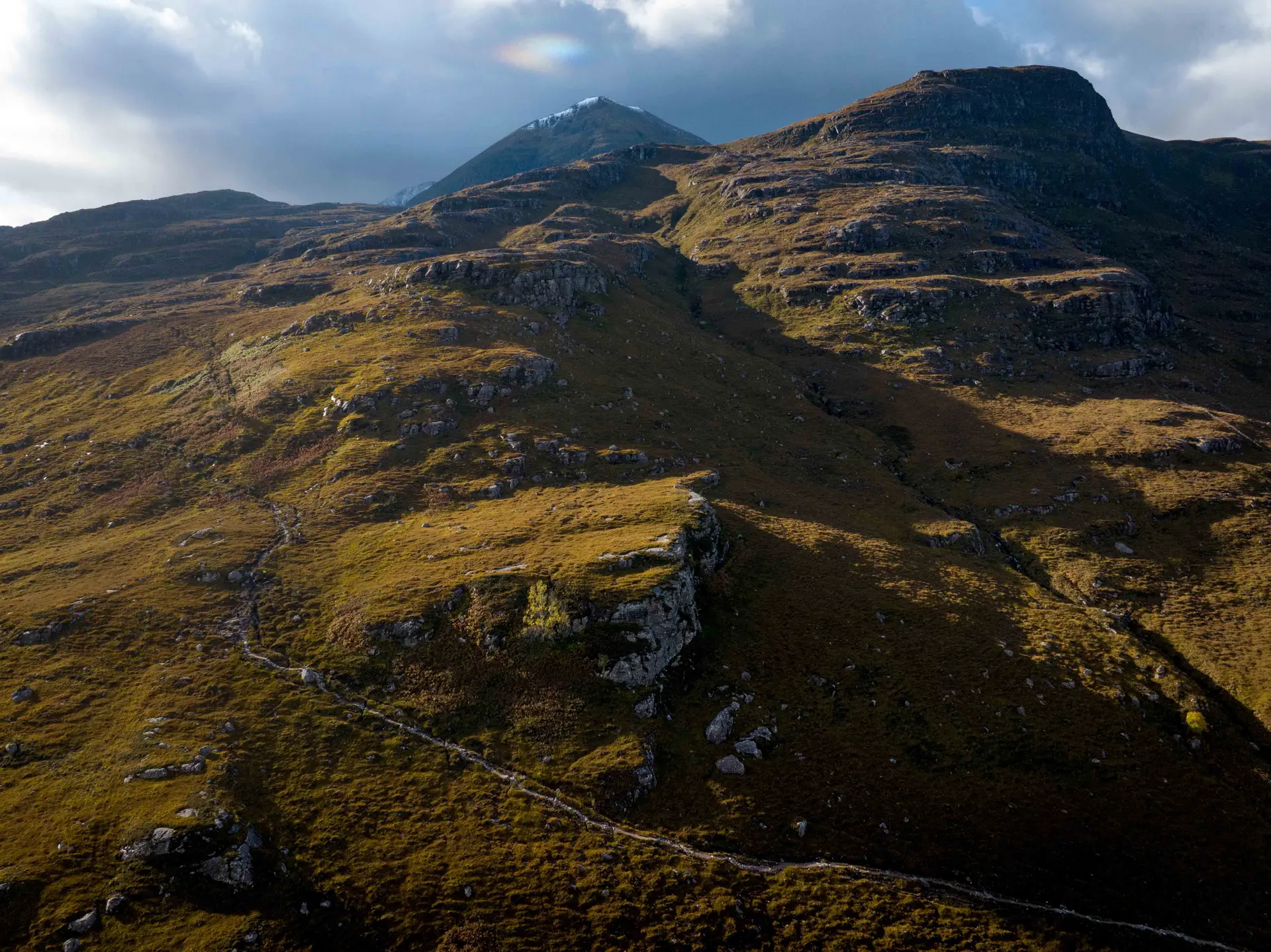 It’s a predictably unpredictable autumnal day in the north west of Scotland; bright sunshine punches through dark clouds. Rain showers hurry through Glens, while higher up, the escarpments of An Teallach receive one of their first dustings of snow, marking the encroaching winter.