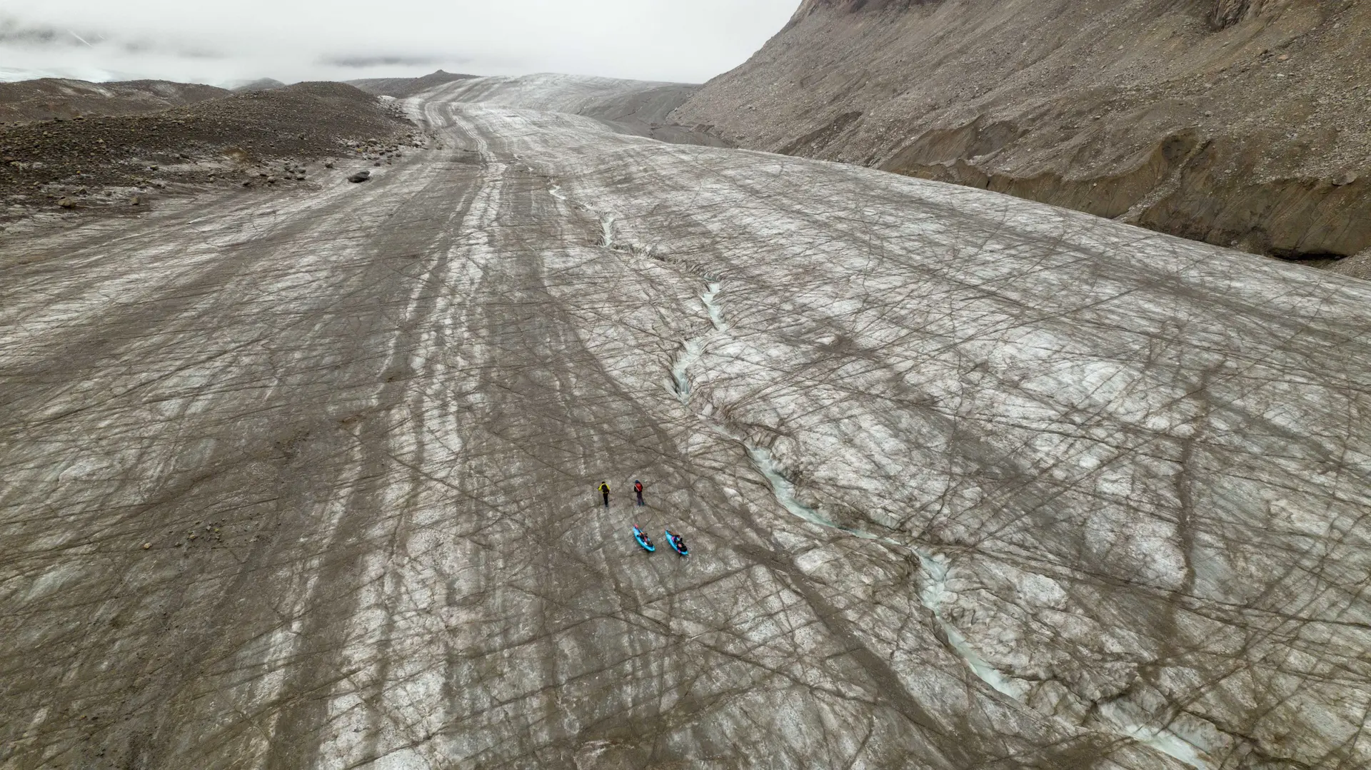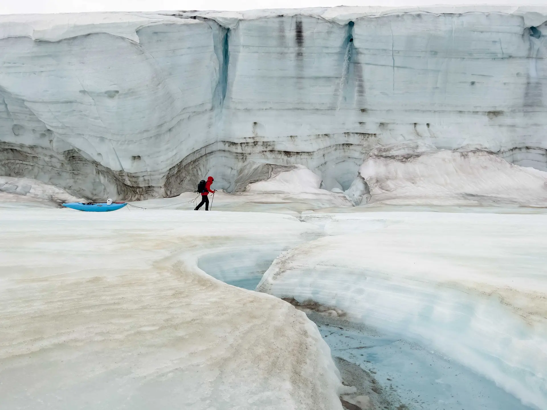 After the mental strain of operating on the edge of their comfort zone on the climb, Boomer in particular is in his element, although McNair-Landry is a long way from being a newbie when it comes to whitewater. They haul up river. Eyeing goals that they have only scouted with Google Maps. The first two rivers are ticked off. River three requires a crossing of an icecap. What should have been easy is more challenging than expected as the pair take four days to negotiate crevasses and huge melt rivers that carve deep canyons in the ice. They lower their kayaks off the edge, down a near sheer ice wall. Each river brings its own unknown challenges. They journey down them in pitches, occasionally paddling together on easier sections, always scanning the horizon for the telltale signs of whitewater. Again, they play along an invisible tightrope, making constant judgements about where they can push their limits and where to hold back.