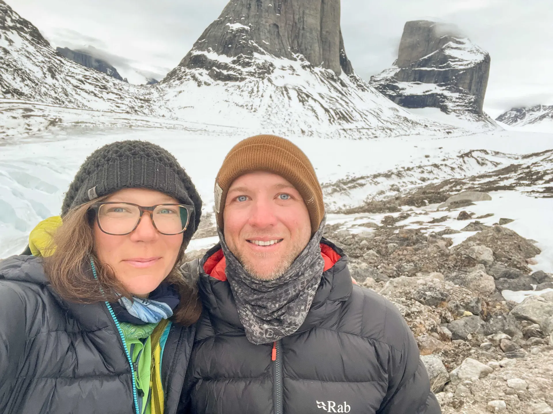 It's June 4th 2022 and Sarah McNair-Landry and Erik Boomer are standing on sea ice, preparing to set out from the small Inuit village of Clyde River on the east coast of Baffin Island. They are on skis, hauling kayaks and sleds, jam packed with camp supplies, food and climbing kit, weighing well over 100kgs apiece into the interior of the arctic island; almost sufficient provisions for over two-months of self-sustained adventuring. The journey is 150km long, via frozen fjords and lakes. They have set off as late as possible; it won’t be long before the sea ice begins to break up and summer arrives. The wind gusts and the couple allow their kites to fill with air and carry them deep into the wilderness, sandwiched between towering cliff walls. They cover days-worth of hauling time in just a few hours. The summer holiday has begun.