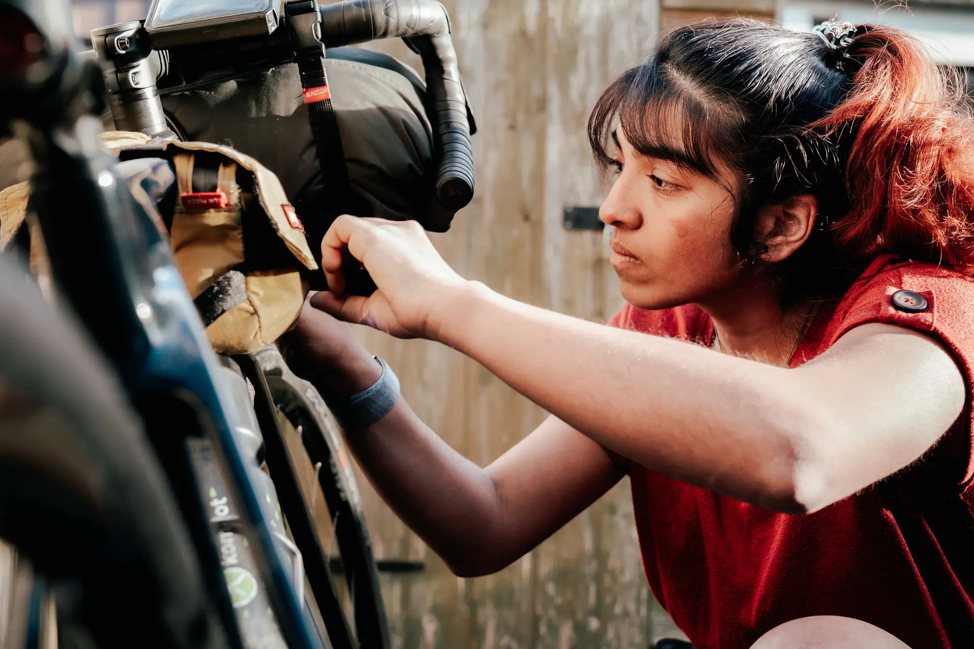 Vedangi Kulkarni is sitting in front of an impressive array of bikes as our Zoom call connects. Her cheeks are rosy pink thanks to sun and wind burn she collected on a recent trip across Svalbard in Norway’s Arctic North. Now though, Vedangi is in her office/bike workshop/spare room and over the duration of our conversation I get an impromptu tour of the room as she darts around, swapping from her desk to sitting on the floor. She pulls a bobble hat on, takes it off; spins around and reveals a large world map on the wall. She crosses her legs, stretches her arms. Kulkarni has energy to burn at every turn.